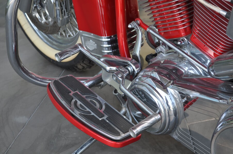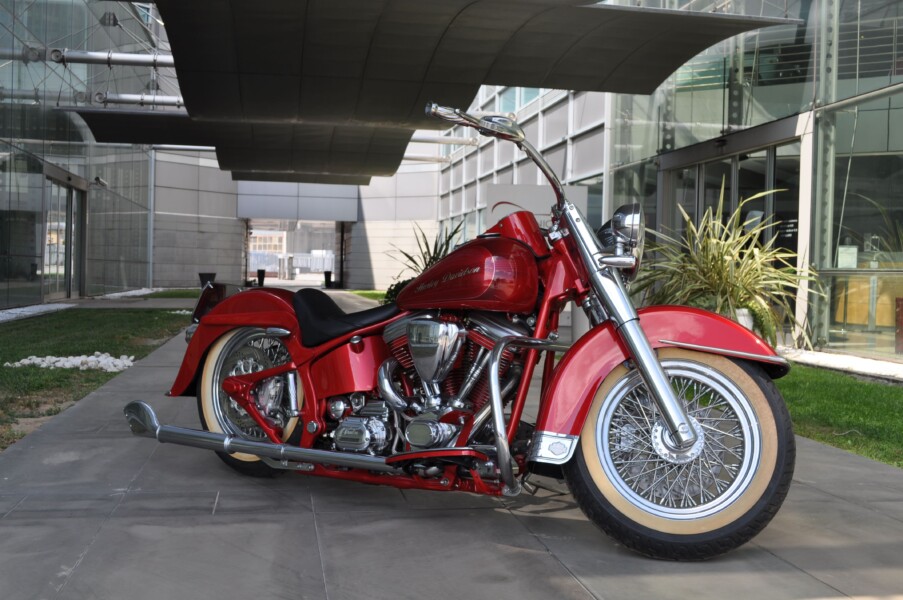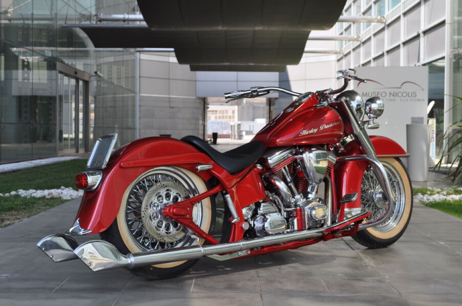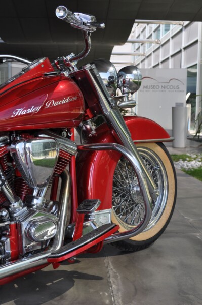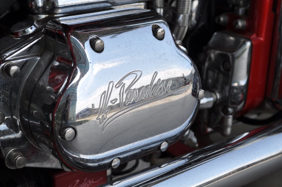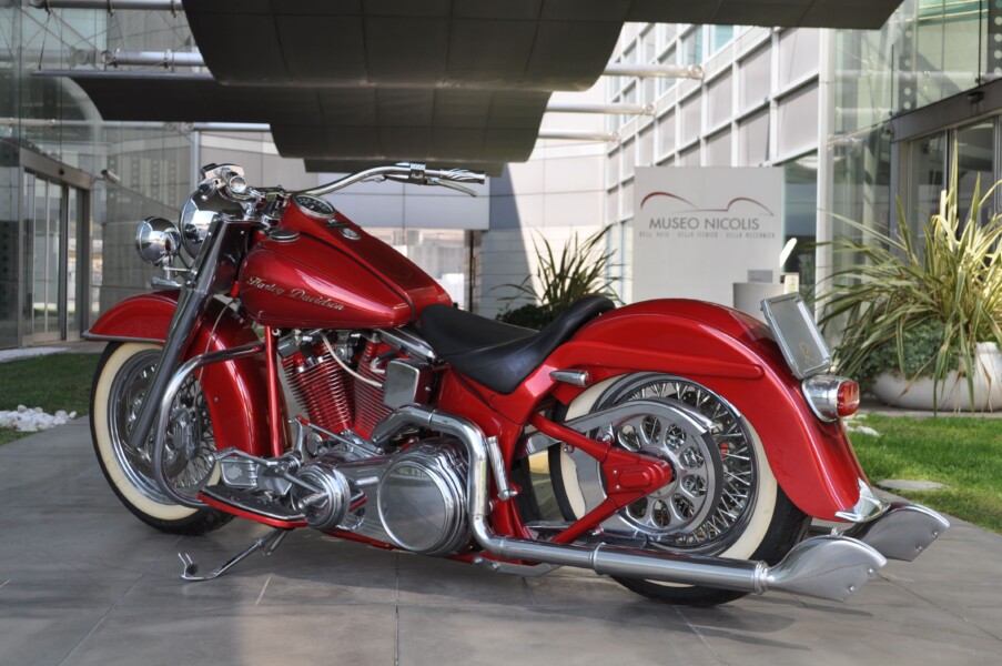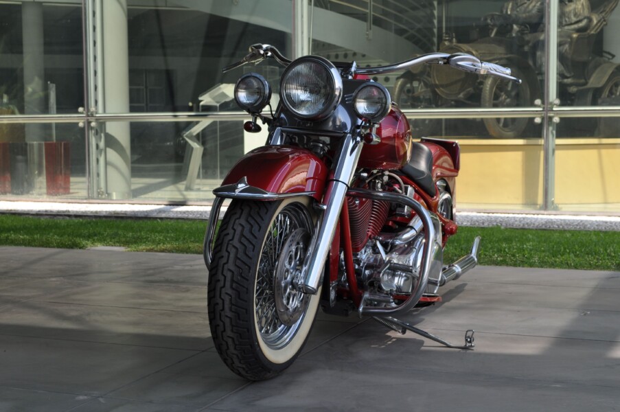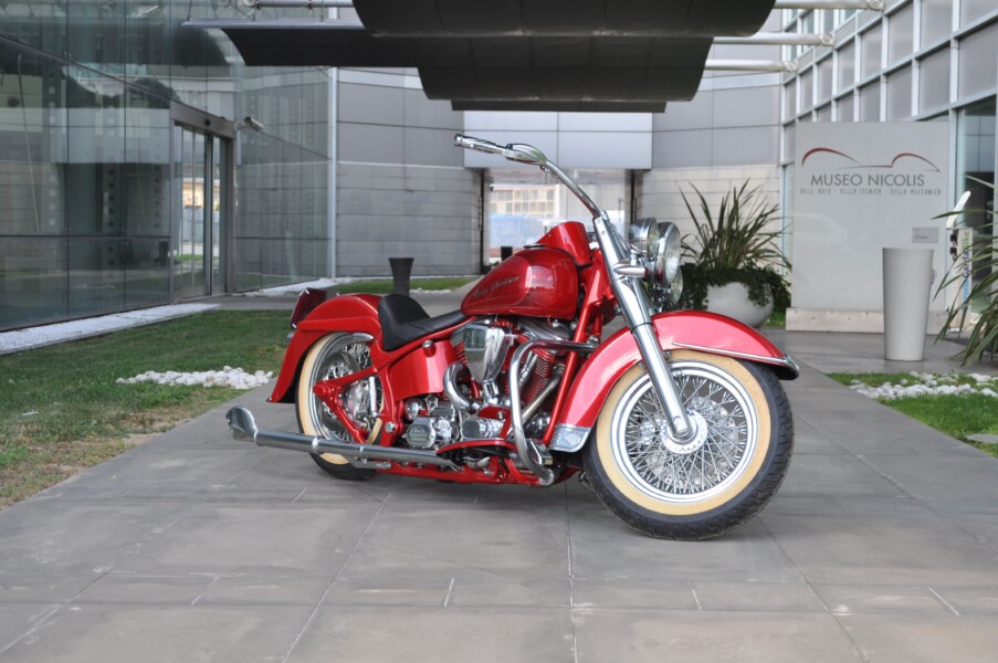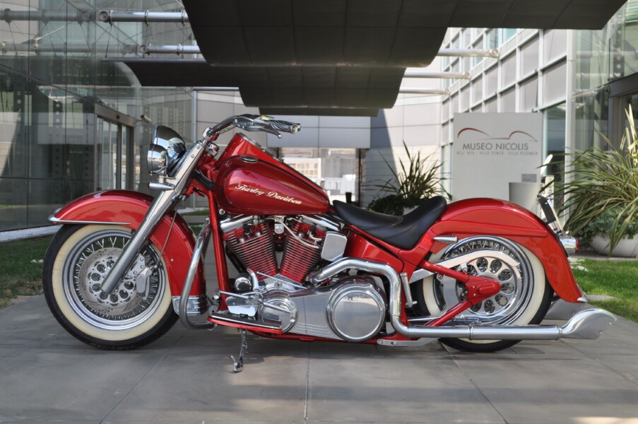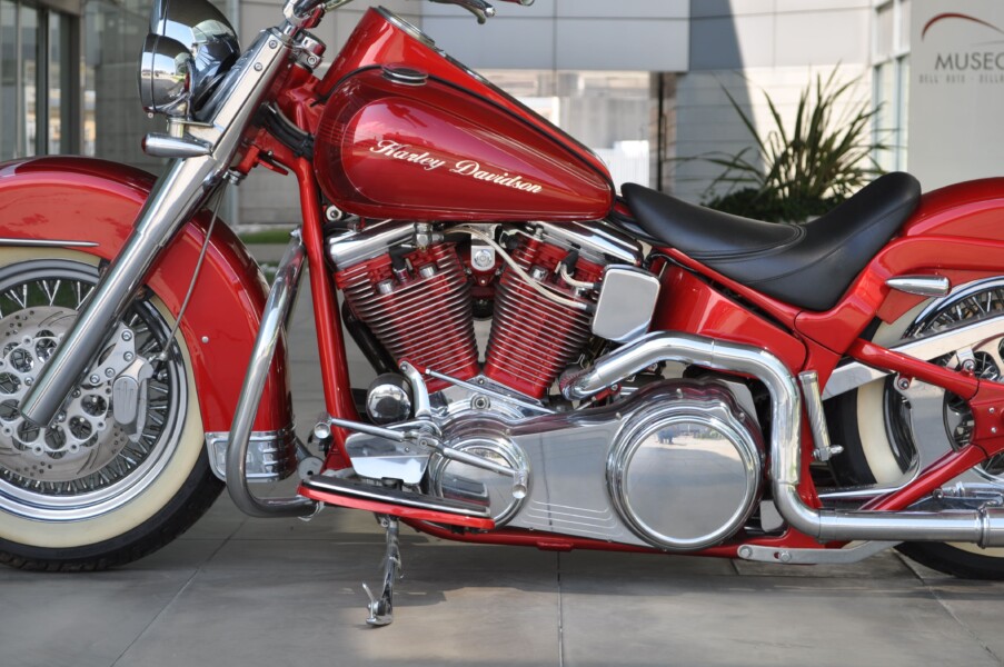Questa in particolare rappresenta in pieno il concetto della Custom Culture: ha subito una radicale personalizzazione che l’ha trasformata in un pezzo unico. Il suo magnifico color ciliegia è il risultato della sovrapposizione di 39 strati di vernice realizzati interamente a mano. Una vera e propria opera d’arte, frutto di 160 ore di lavoro.