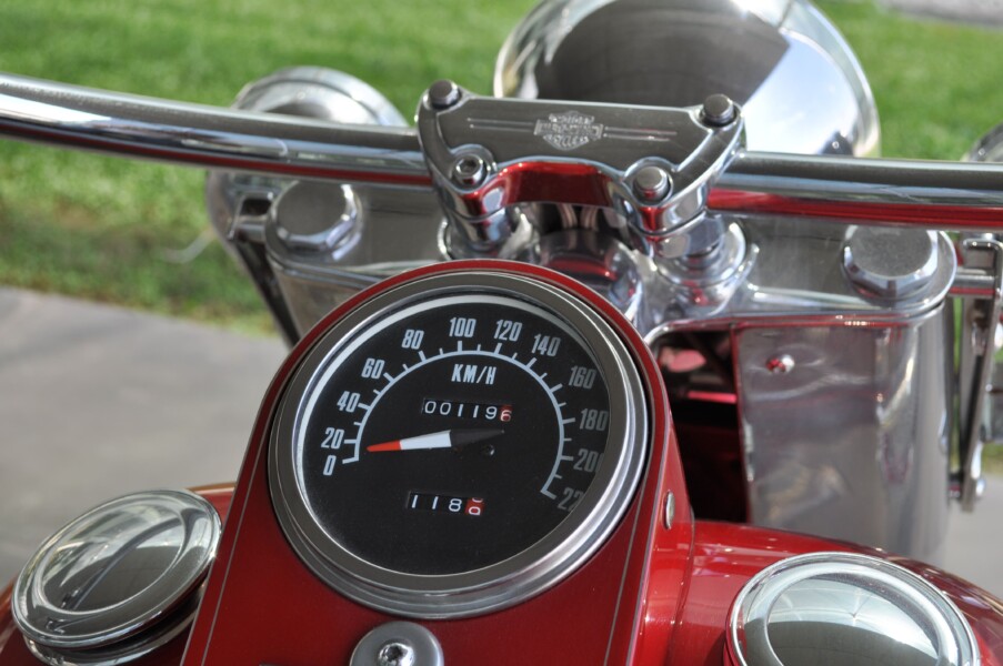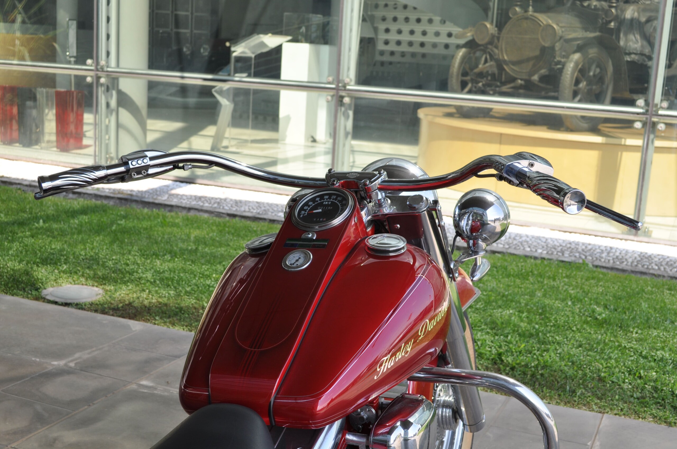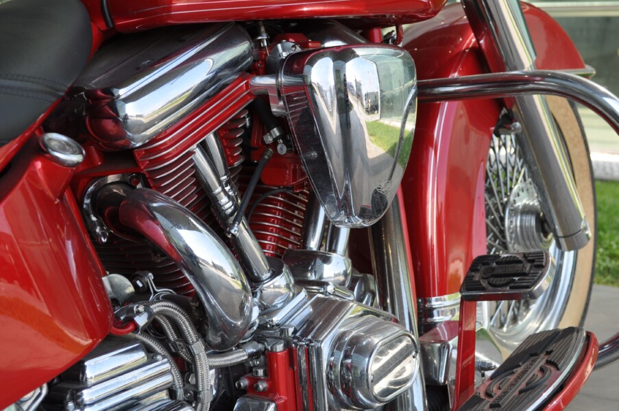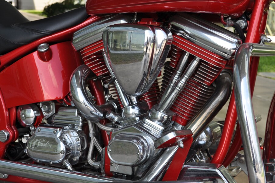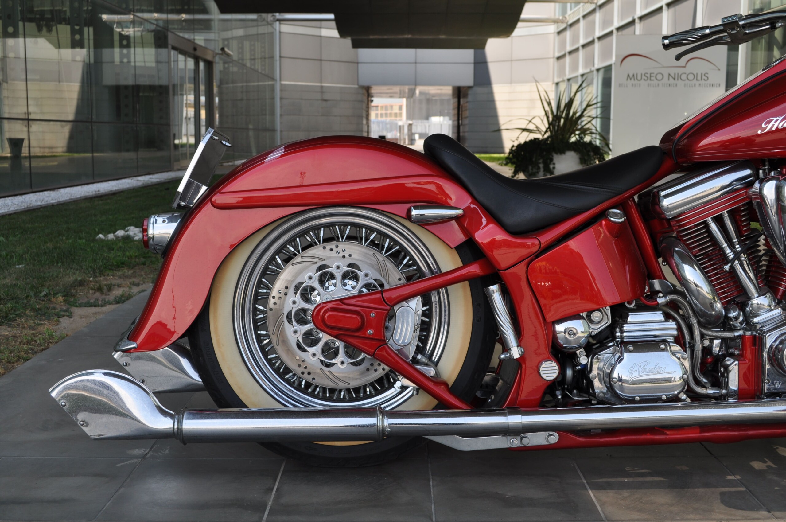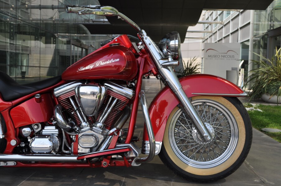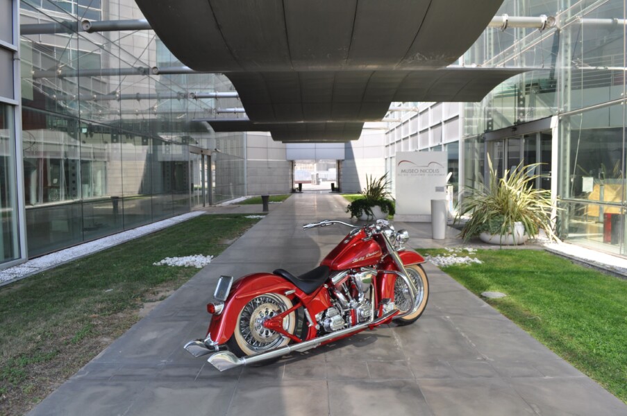 Questa in particolare rappresenta in pieno il concetto della Custom Culture: ha subito una radicale personalizzazione che l’ha trasformata in un pezzo unico. Il suo magnifico color ciliegia è il risultato della sovrapposizione di 39 strati di vernice realizzati interamente a mano. Una vera e propria opera d’arte, frutto di 160 ore di lavoro.