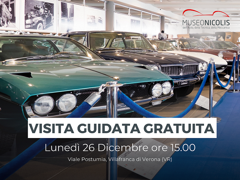 Villafranca di Verona, 21 dicembre 2022 – In occasione delle festività il Museo Nicolis apre le porte lunedì 26 dicembre e regala ai propri visitatori una visita guidata gratuita con l’acquisto del biglietto ad un prezzo ridotto. La visita guidata si terrà il giorno di Santo Stefano alle ore 15.00, previa prenotazione, con un esperto che accompagnerà tutti i visitatori alla scoperta della storia dell’automobile e alla visita delle 10 collezioni del Museo: 200 auto d’epoca, 110 biciclette, 500 macchine fotografiche, prestigiose moto storiche, 100 strumenti musicali, altrettante macchine da scrivere e molto altro.