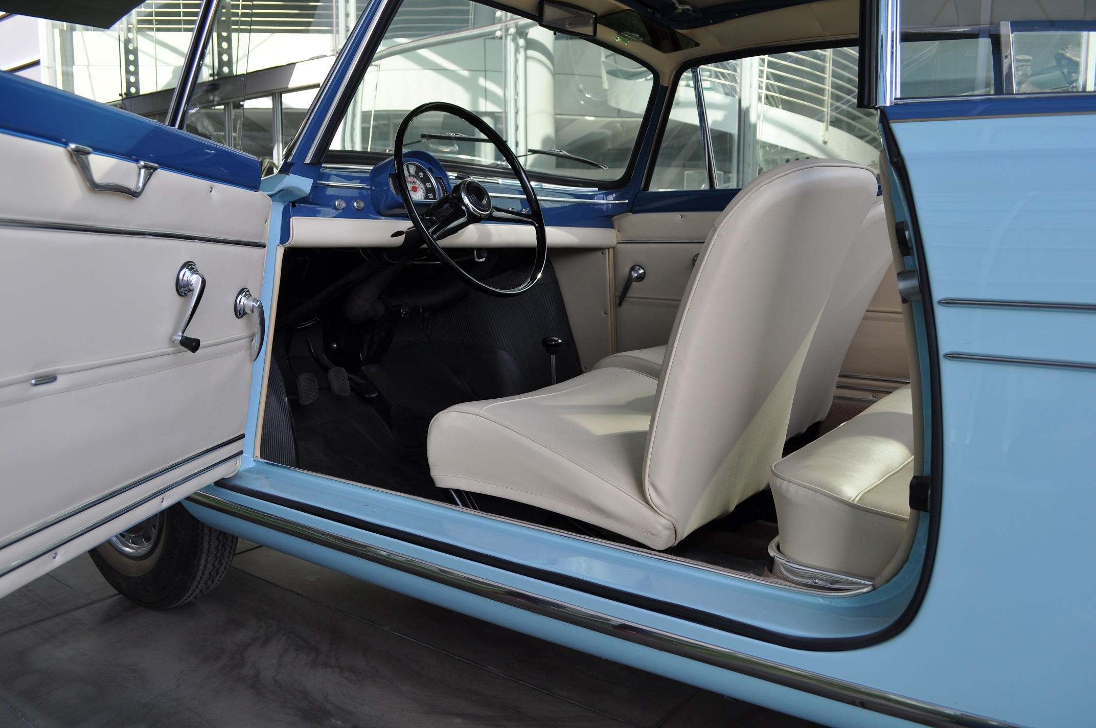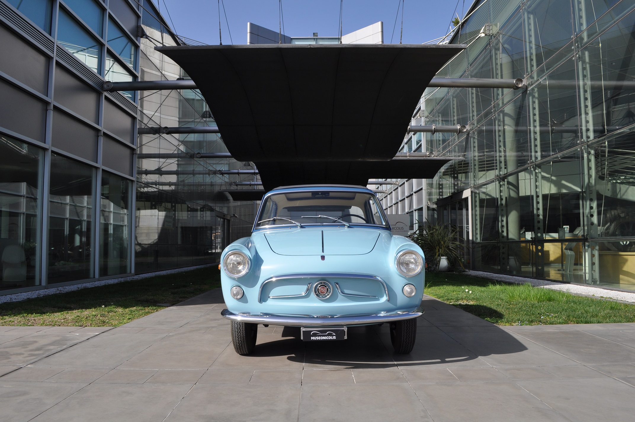 La versione D del 1960 introdusse miglioramenti significativi, tra cui un motore potenziato da 767 cm³. Il modello esposto dal Museo Nicolis è una versione speciale: un esclusivo coupé con tetto in tela, firmato dal celebre carrozziere Vittorino Viotti. uno dei più raffinati artigiani del design automobilistico italiano. Attiva fin dagli anni ’20, la sua carrozzeria si specializzò nella creazione di modelli esclusivi e di alta qualità, questo esemplare rappresenta perfettamente l’estro creativo e il design italiano dell’epoca che contribuirono a diffondere il made in Italy nel mondo.