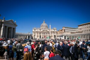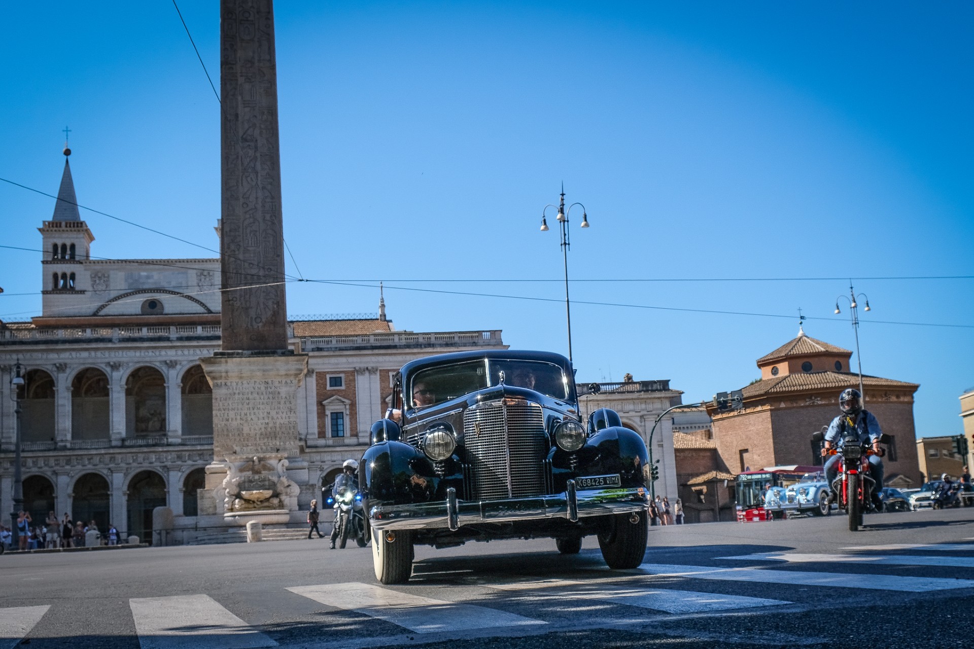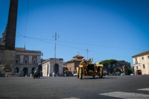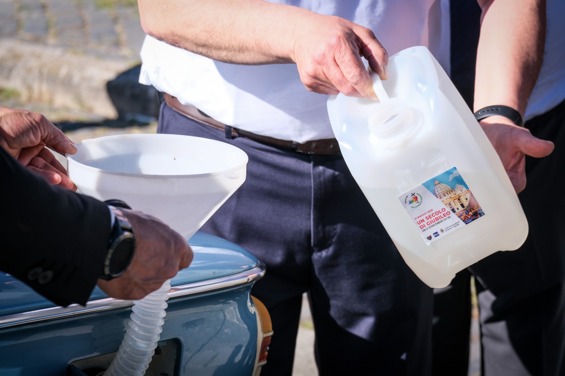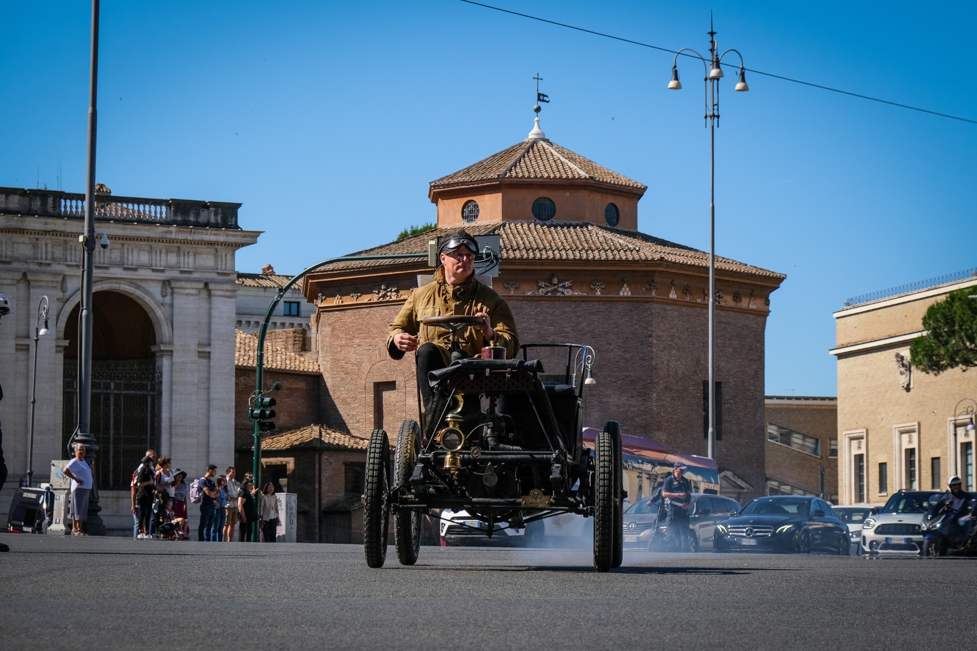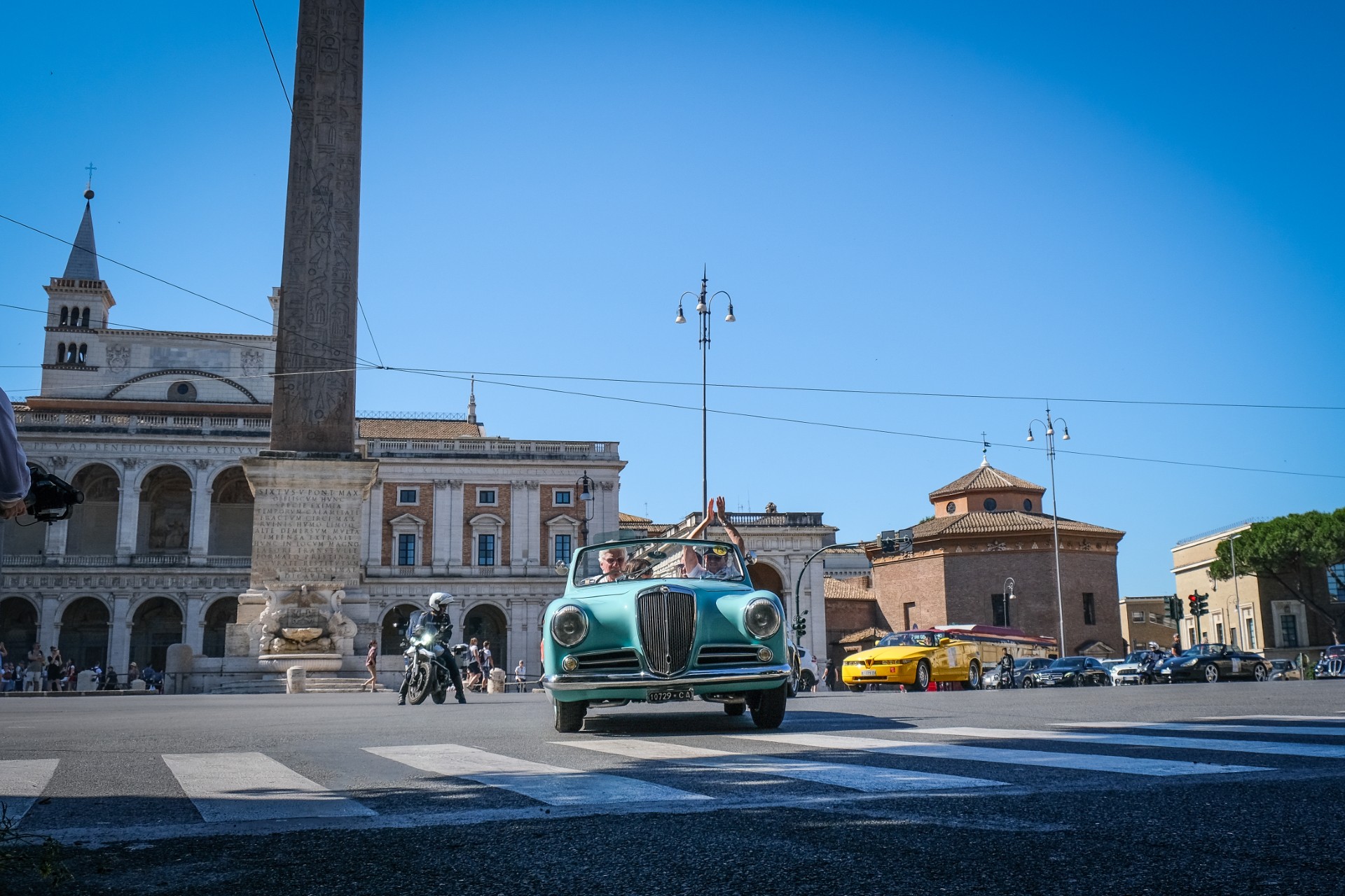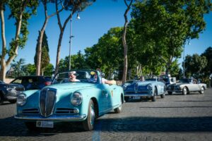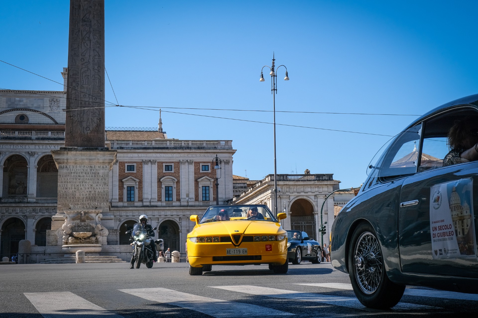 Le vetture hanno sfilato in un affascinante corteo partito dal Gianicolo fino a raggiungere Piazza San Pietro, attraversando Via della Conciliazione, dove è stata allestita un’esposizione straordinaria, aperta al pubblico. A guidare la parata, la storica Fiat 1500 del 1966 della RAI, già utilizzata nelle radiocronache del Giro d’Italia ciclistico.