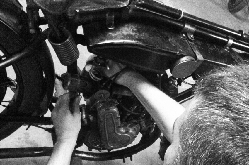 La moto Premier 3.5 Hp 1912 del Museo Nicolis viene accesa e provata.
