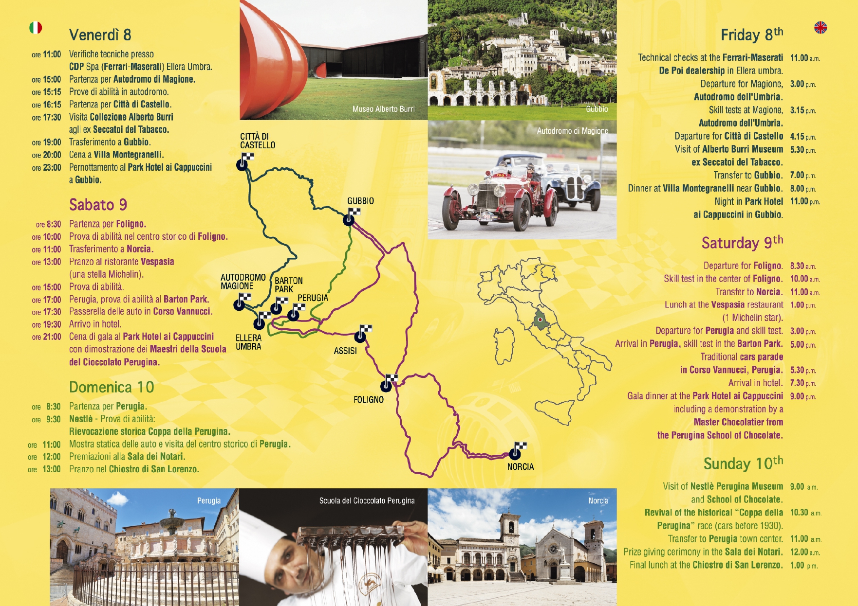 In questa eccitante atmosfera, il Nicolis rende omaggio a due grandissimi protagonisti italiani: Zagato e Mastroianni con la sua Lancia Flaminia “Super Sport Zagato” del 1965. È la collaborazione con Coppa della Perugina che rende speciale questo evento, in un connubio all’insegna della Dolce Vita. Infatti, Giovanni Buitoni visionario romantico e sportivo, insieme a Luisa Spagnoli sensibile, geniale e imprenditrice di successo, creano una delle dolcezze più apprezzate al mondo che, nell’immaginario collettivo, riporta all’amore e alla passione: il Bacio Perugina.