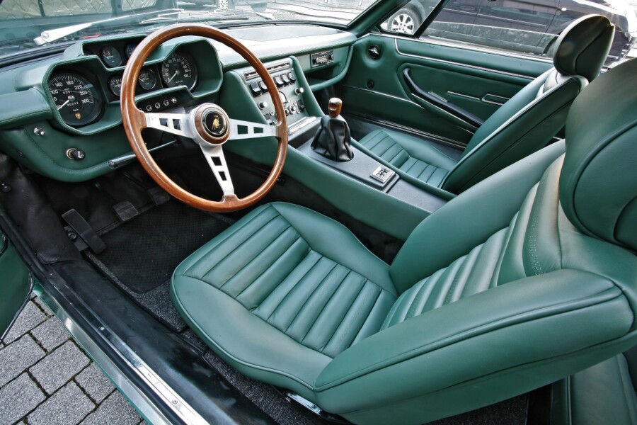Derivata dalla 400 GT, da cui riprende pianale e meccanica, l’Espada presenta un passo allungato di 15 cm e monta il classico V12 Lamborghini da 3.929 cc, portato a 325 CV. Le finiture sono di altissimo livello: l’abitacolo è interamente rivestito in pelle, inclusa la plancia, espressione del lusso sportivo italiano degli anni Sessanta. Caratterizzata da un design bassissimo e filante (appena 1,12 metri di altezza), l’Espada introduce per la prima volta nella produzione Lamborghini l’esagono come cifra stilistica, elemento che tornerà nei modelli successivi fino alle supercar contemporanee. Il profilo fastback e il doppio lunotto posteriore garantiscono una visibilità sorprendente, mentre il grande cofano è arricchito da prese d’aria NACA d’ispirazione aeronautica.