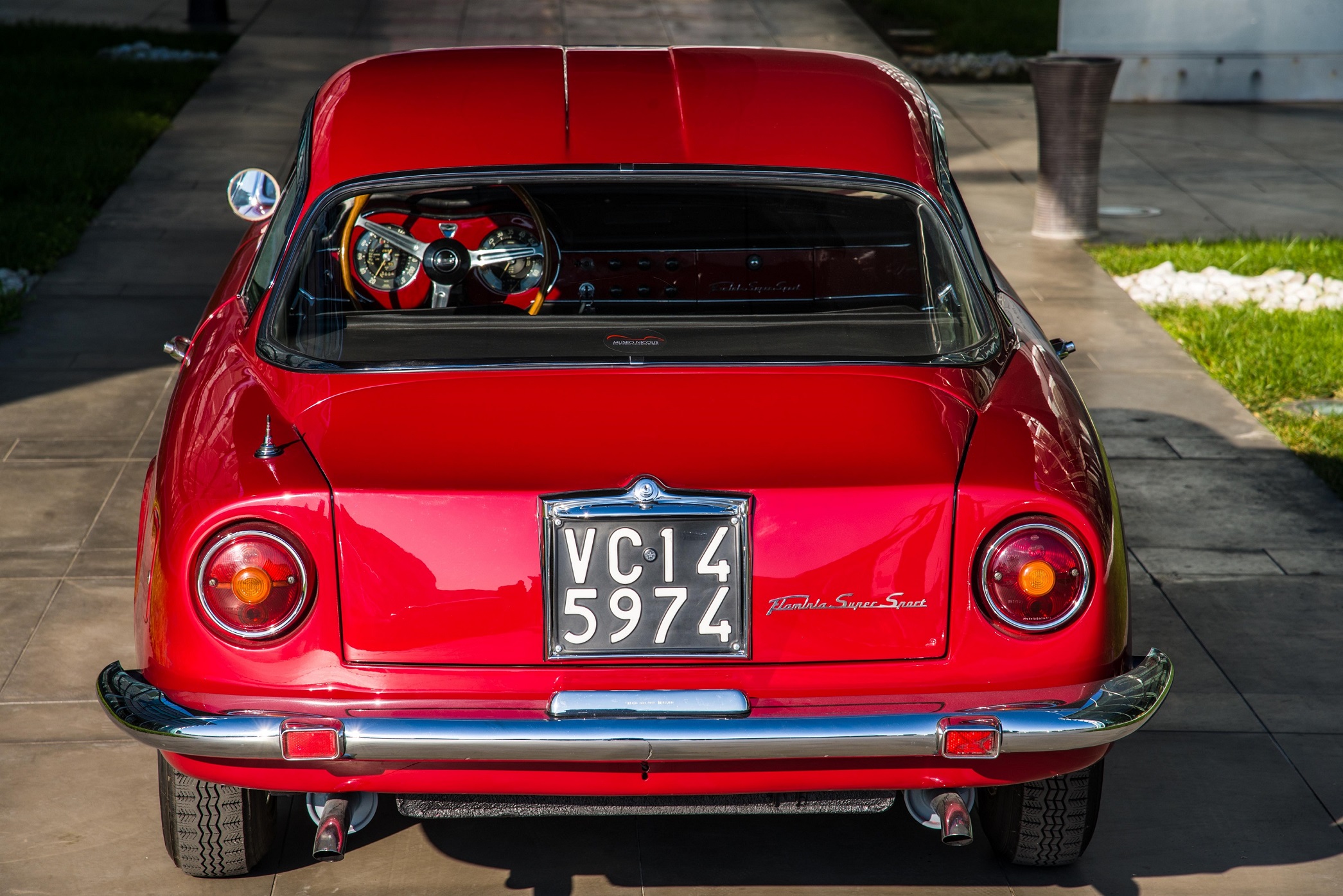 Design e innovazione - Elegante e sportiva al tempo stesso, la Super Sport si distingueva per profonde modifiche stilistiche rispetto al modello precedente. La coda, ora tronca, manteneva i gruppi ottici circolari inseriti in incavi più ampi, accentuando la dinamica laterale. Il frontale, ridisegnato, conservava la tradizionale calandra Lancia, ora meglio raccordata con i gruppi ottici a goccia protetti da elementi in plastica. Gli interni erano particolarmente curati, con sedili anatomici di nuovo disegno. Innovativa per l’epoca la presenza di un vano passante tra abitacolo e baule, pensato per trasportare agevolmente oggetti lunghi come una sacca da golf o un paio di sci.