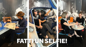 Abbiamo finalmente inaugurato l’Area Selfie ambientata al Bar Sport! Un tuffo nei favolosi anni ’50 dove potrete giocare a carte, sorseggiare un caffè sfogliando “La Domenica del Corriere” dell’epoca, ma soprattutto proverete l’emozione di salire sulla BMW Isetta del 1957 per uno scatto unico!