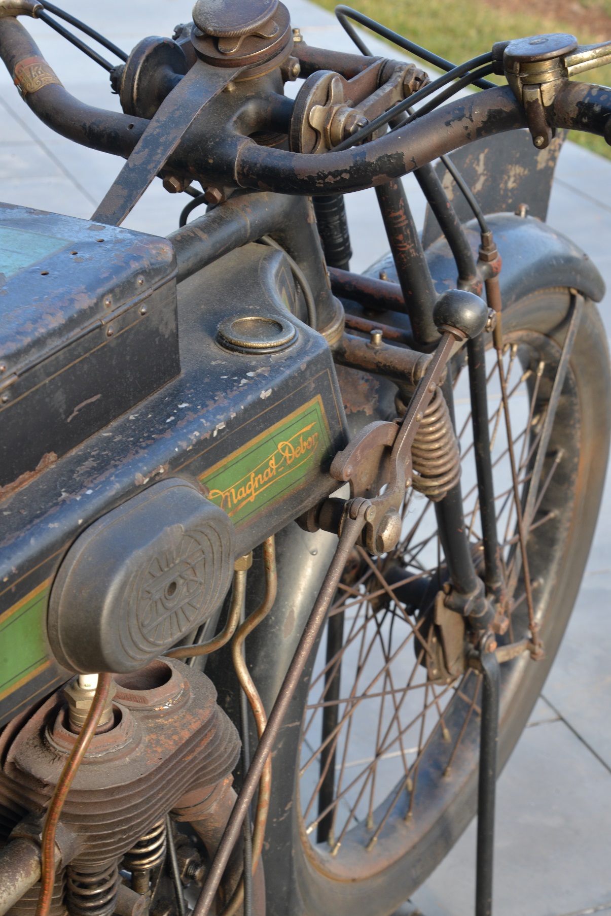 - Joseph Magnat e Louis Debon brevettarono nel 1895 in Francia e l'anno dopo nel Regno Unito, due freni per bicicletta: uno a leva e l'altro, noto come freno “invisibile”, azionato premendo con il pollice della mano destra. L'asta di comando è nascosta nell'attacco del manubrio e nel tubo di sterzo. Un unico pattino del freno emerge dal centro della forcella e poggia sul battistrada del pneumatico.