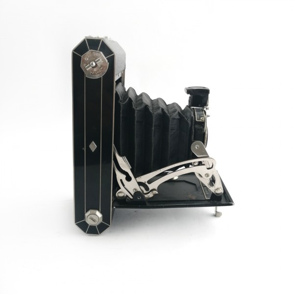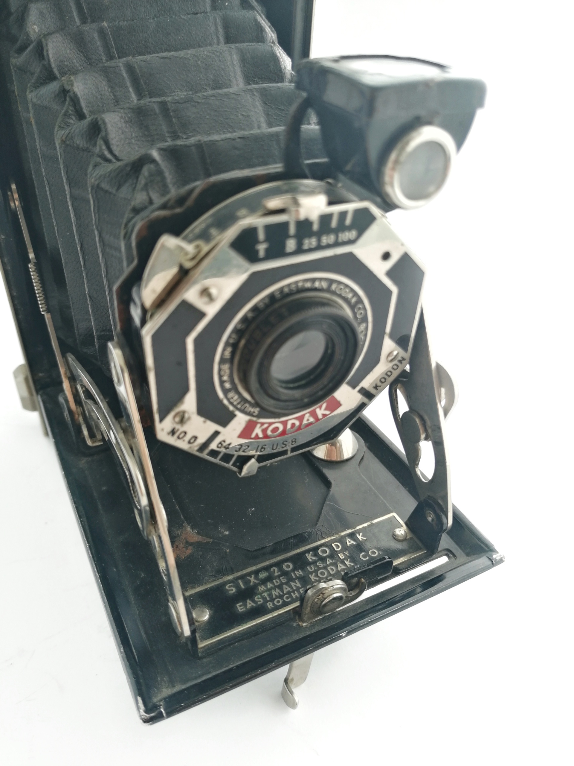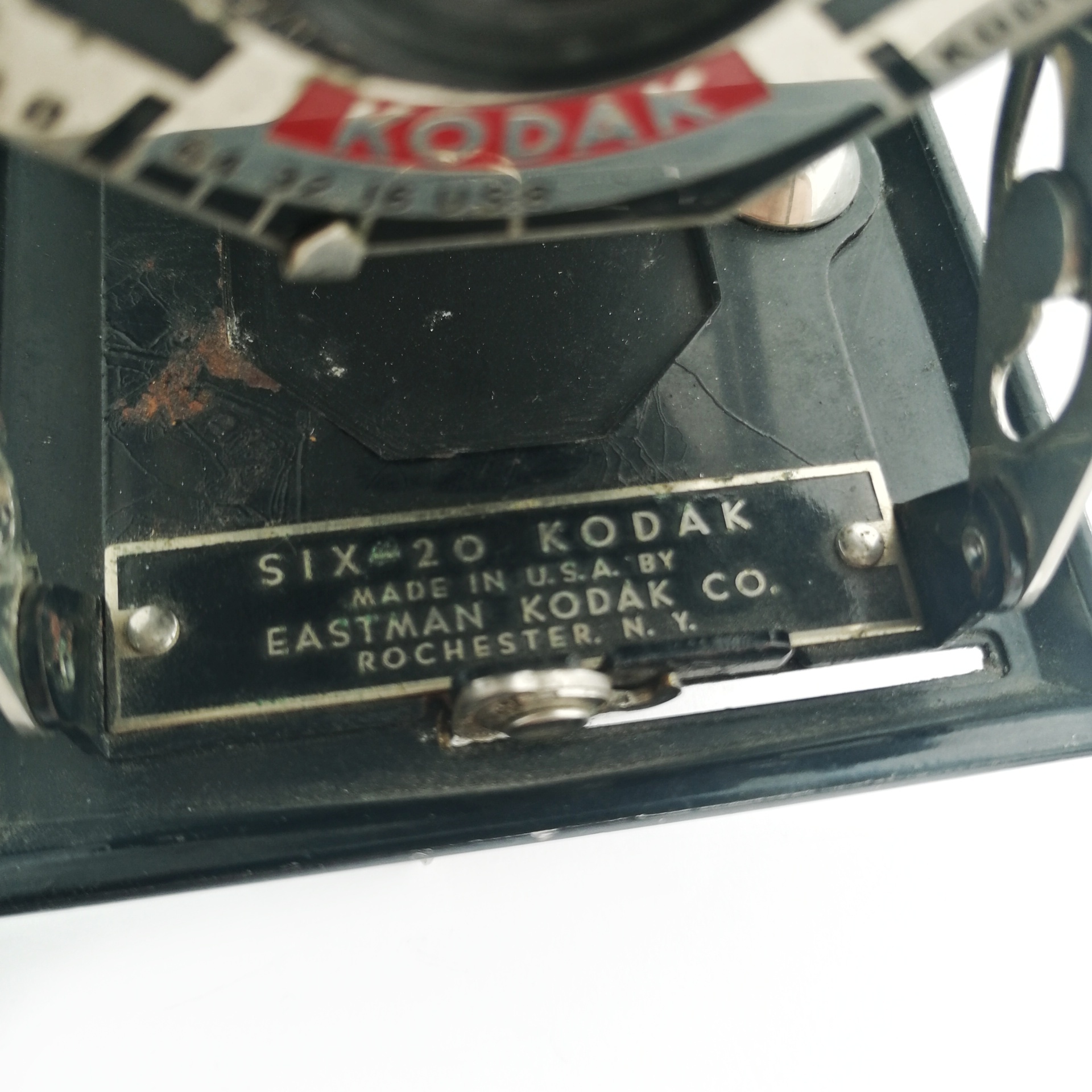 Il modello SIX-20 viene introdotto dalla Kodak nel 1932, in un decennio in cui le macchine fotografiche a soffietto erano le più ambite e diffuse. Già dall’anno successivo il modello viene ridisegnato, diventando SIX-20 modello C.