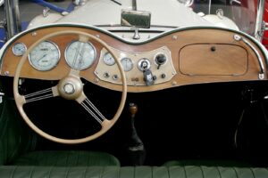 Il modello MG T-Type, con telaio separato, fu prodotto dalla Morris Garages dal 1936 al 1955 in diversi modelli:  TA, TB, TC, TD e TF Midget. La TD, dal 1950, è in sosotanza la continuazione della serie di piccole vetture sportive, le Midget, iniziata nel 1936 con la TA e finita nel 1955 con la TF. Ancora ispirata allo stile delle sportive degli anni Trenta con parafanghi molto allungati, piccole portiere e grandi fanali esterni, la vettura ha il cruscotto in legno lavorato a mano ed altri particolari tipici di quell’epoca.