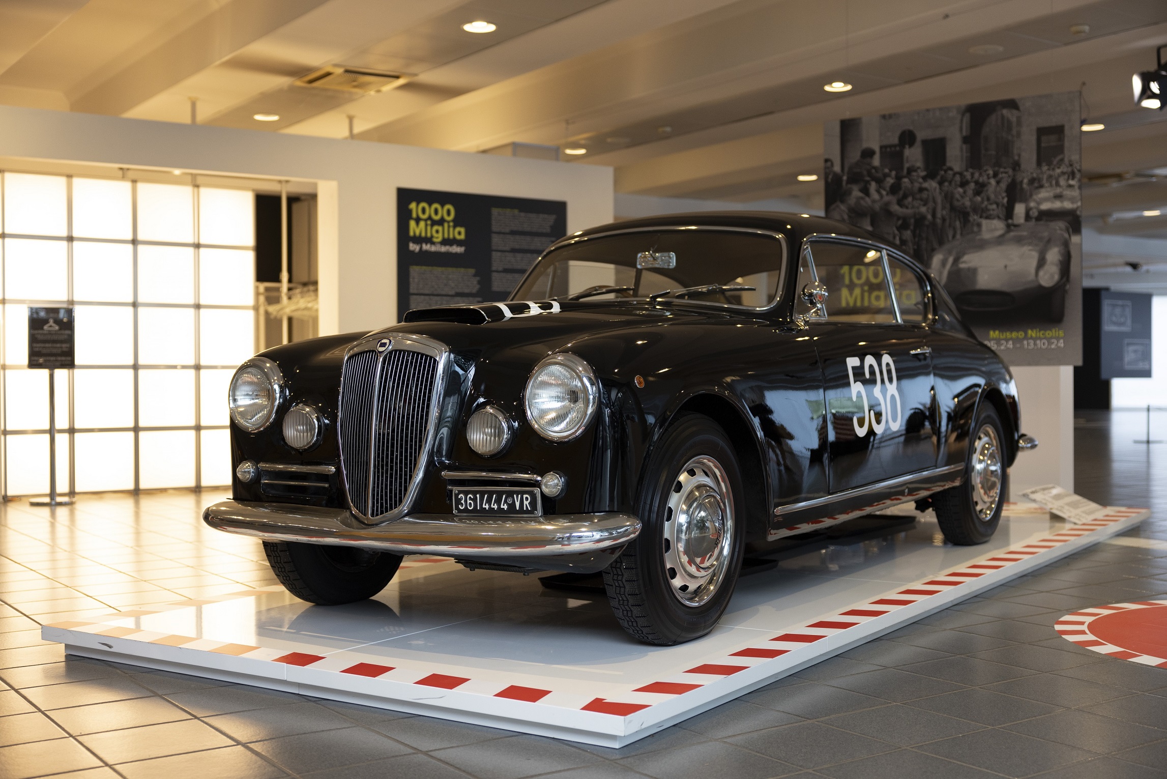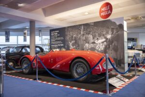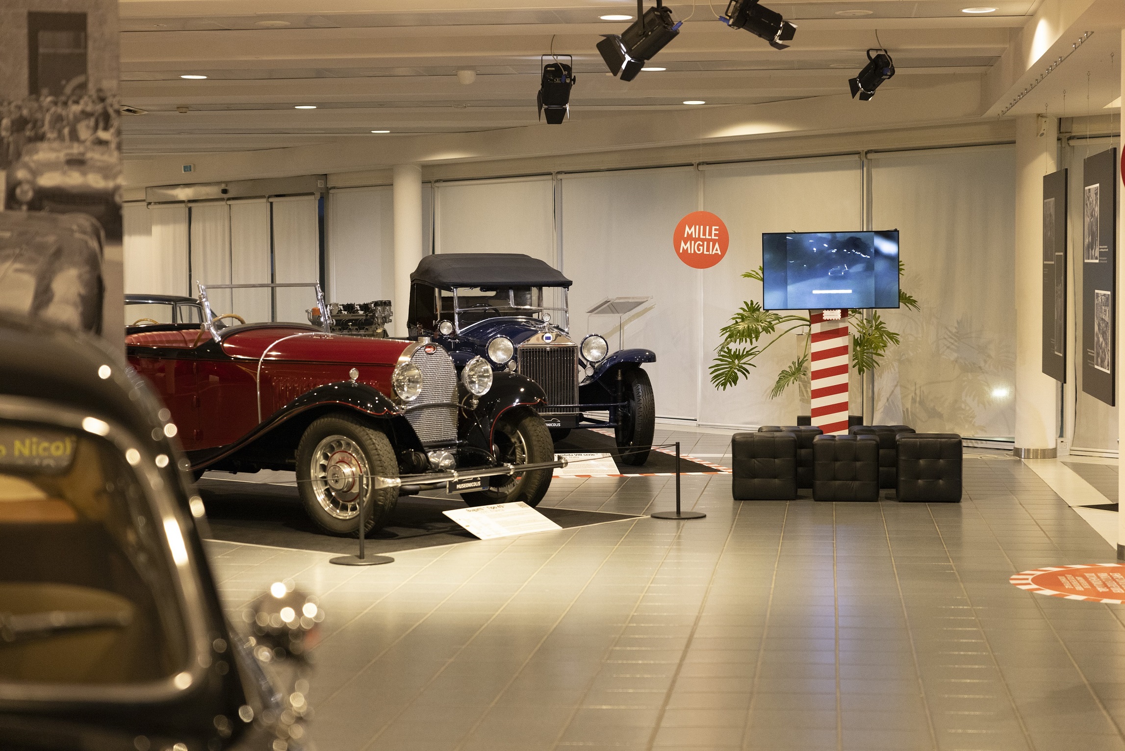 Il criterio espositivo è emozionante grazie a scenografie immersive ispirate agli anni ’50 come il Bar Sport, l’ufficio del Giornalista, il Pilota e il Foto Reporter. Lungo il percorso anche i Trofei vinti da piloti leggendari come Nuvolari e Ascari, l’Officina d’epoca con banco Bugatti e numerosi modelli di automobili (circa 20 su 90 auto esposte) che parteciparono alla Mille Miglia tra cui l’iconica Lancia Astura Mille Miglia del 1938 e la Fiat 1100 Sport Motto del 1948, esemplari unici che gareggiarono proprio alle edizioni storiche.