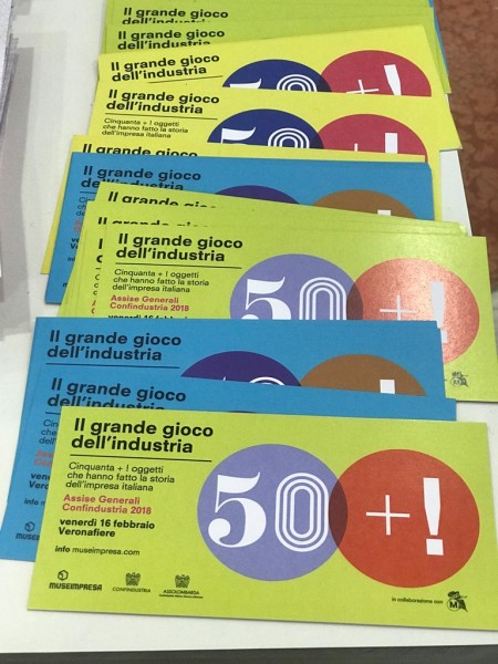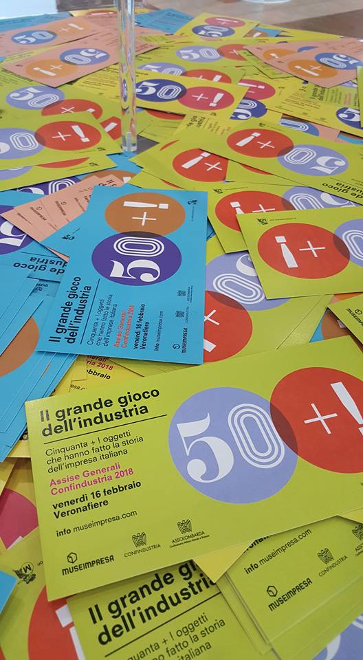 Venerdì 16 febbraio 2018 la mostra di Museimpresa “50+! Il grande gioco dell’industria”, curata da Francesca Molteni, sarà allestita a Verona in occasione delle Assise Generali 2018 di Confindustria. L’esposizione iconografica di Museimpresa, che accoglierà i partecipanti all’ingresso del polo fieristico, valorizza l’apporto culturale delle imprese allo sviluppo sociale ed economico del Paese, contribuendo ad accrescere la consapevolezza che l’identità italiana sia fortemente industriale.