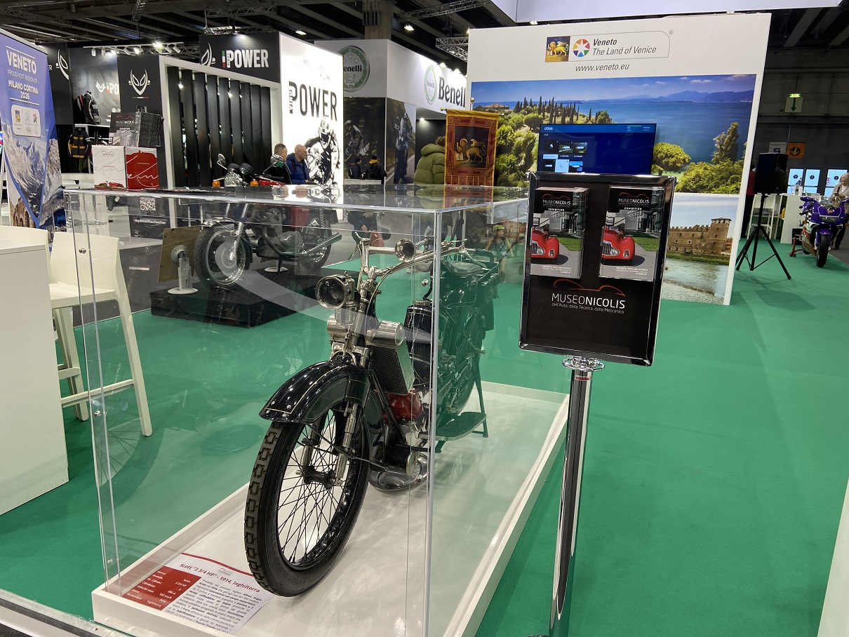 Dal 19 al 21 gennaio, il Museo Nicolis ha partecipato alla kermesse in grande stile, esponendo un gioiello rarissimo della sua collezione: la Scott 3 3/4 HP del 1914, una moto inedita che si contraddistingue per innovazione e design. Presenta infatti diverse raffinatezze tecniche tra cui il raffreddamento ad acqua, come si evince dal grande radiatore che la caratterizza. Viene attribuito ad Alfred Scott, pioniere inglese, il primato per aver reso popolare il motore a 2 tempi raffreddato ad acqua.