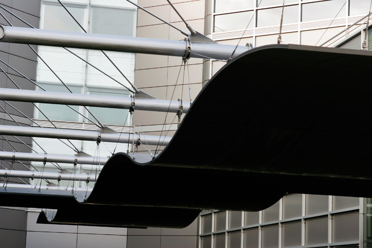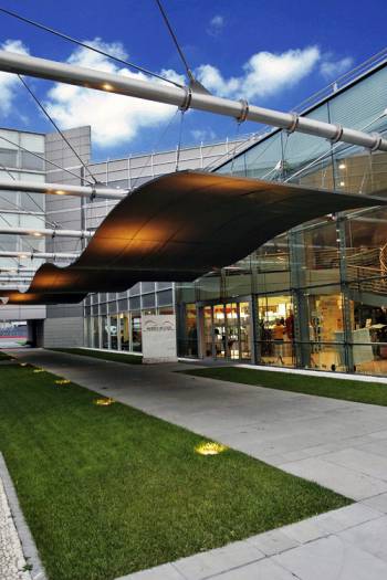 L’articolazione dell’edificio ed il suo orientamento consentono un continuo cambio di prospettiva durante l’avvicinamento e la possibilità di viste frontali delle facciate da diversi punti di osservazione. Una delle più significative caratterizzazioni dell’impatto visivo è data inoltre da una grande galleria coperta che segna centralmente l’accesso pedonale al Museo. Un’architettura fresca, leggera per custodire le meraviglie della storia dell’auto.