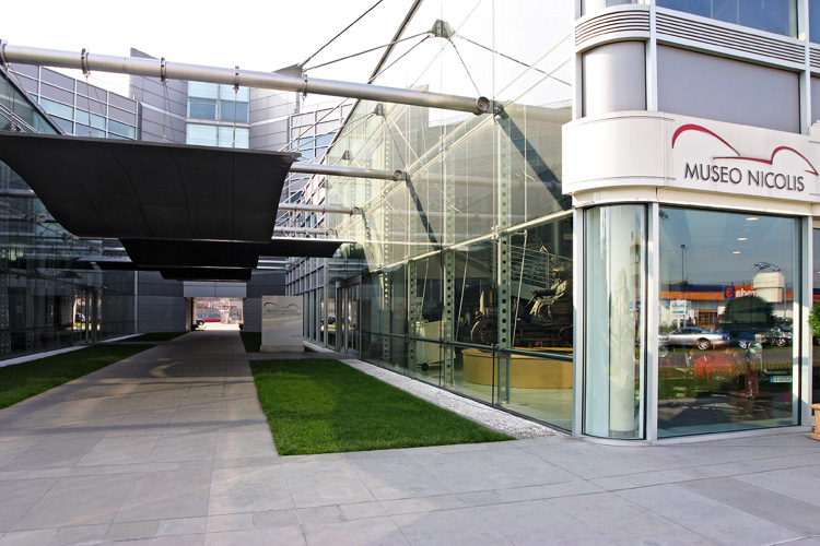 Il progetto del nuovo edificio che ospita la collezione Nicolis prevedeva di realizzare una struttura architettonica a piani liberi: i locali interni possono articolarsi liberamente adeguandosi alle esigenze funzionali dell’esposizione museale. Le grandi facciate in vetro consentono alla luce di entrare a piacere negli spazi interni di questo moderno fabbricato.
