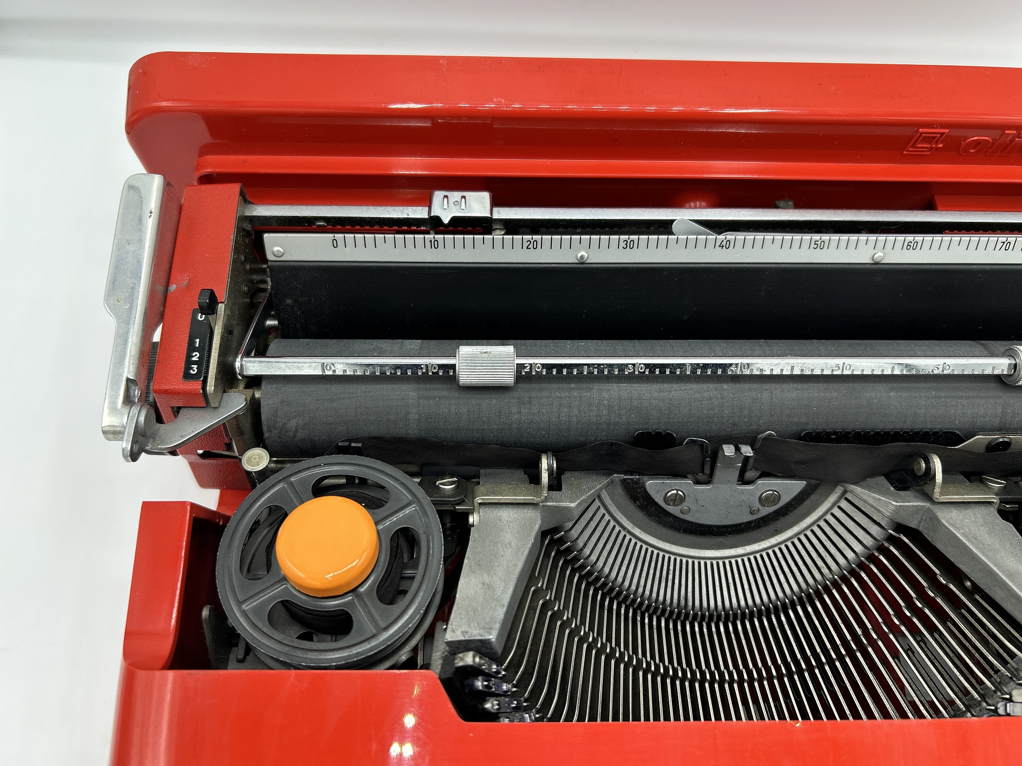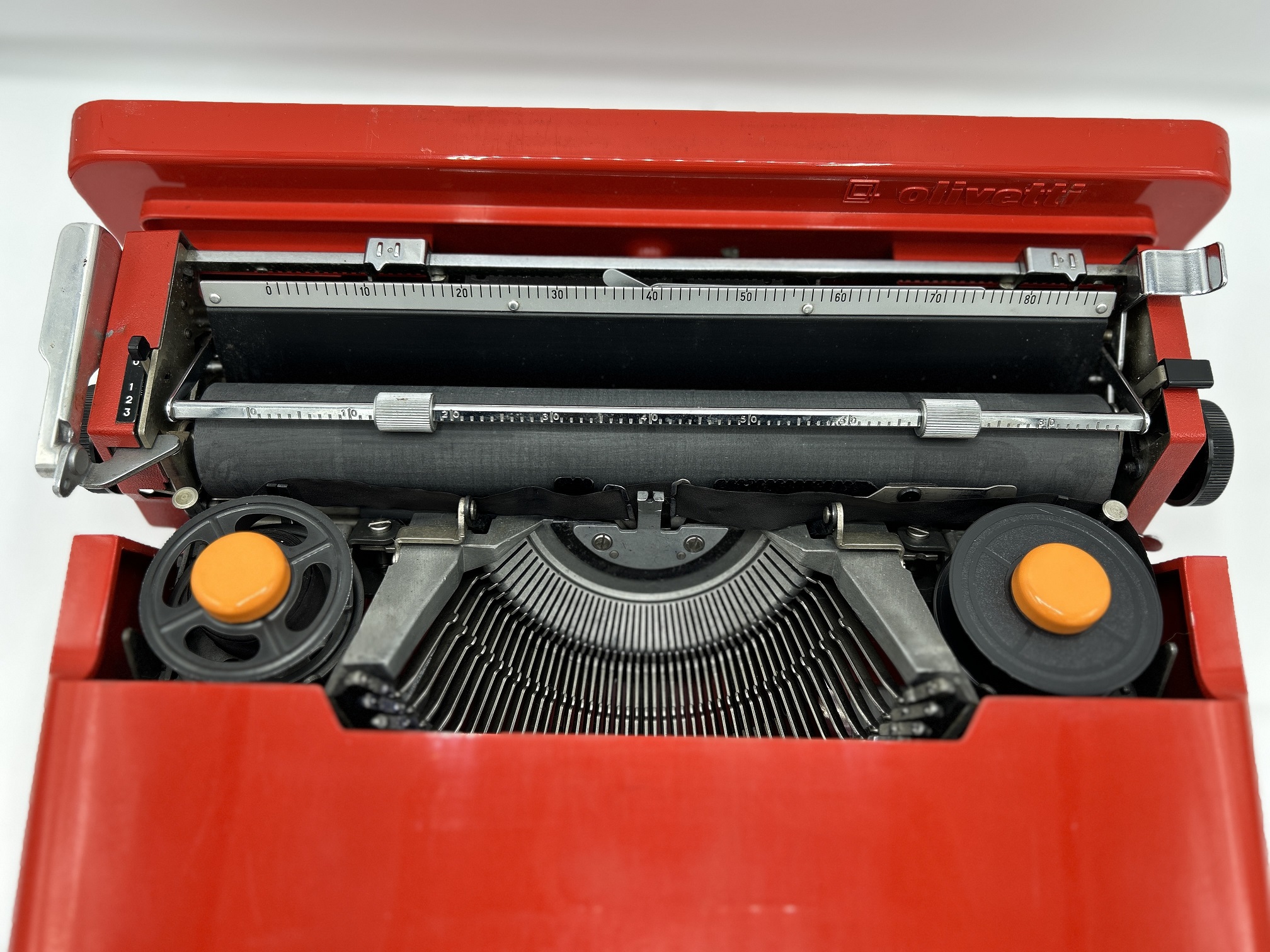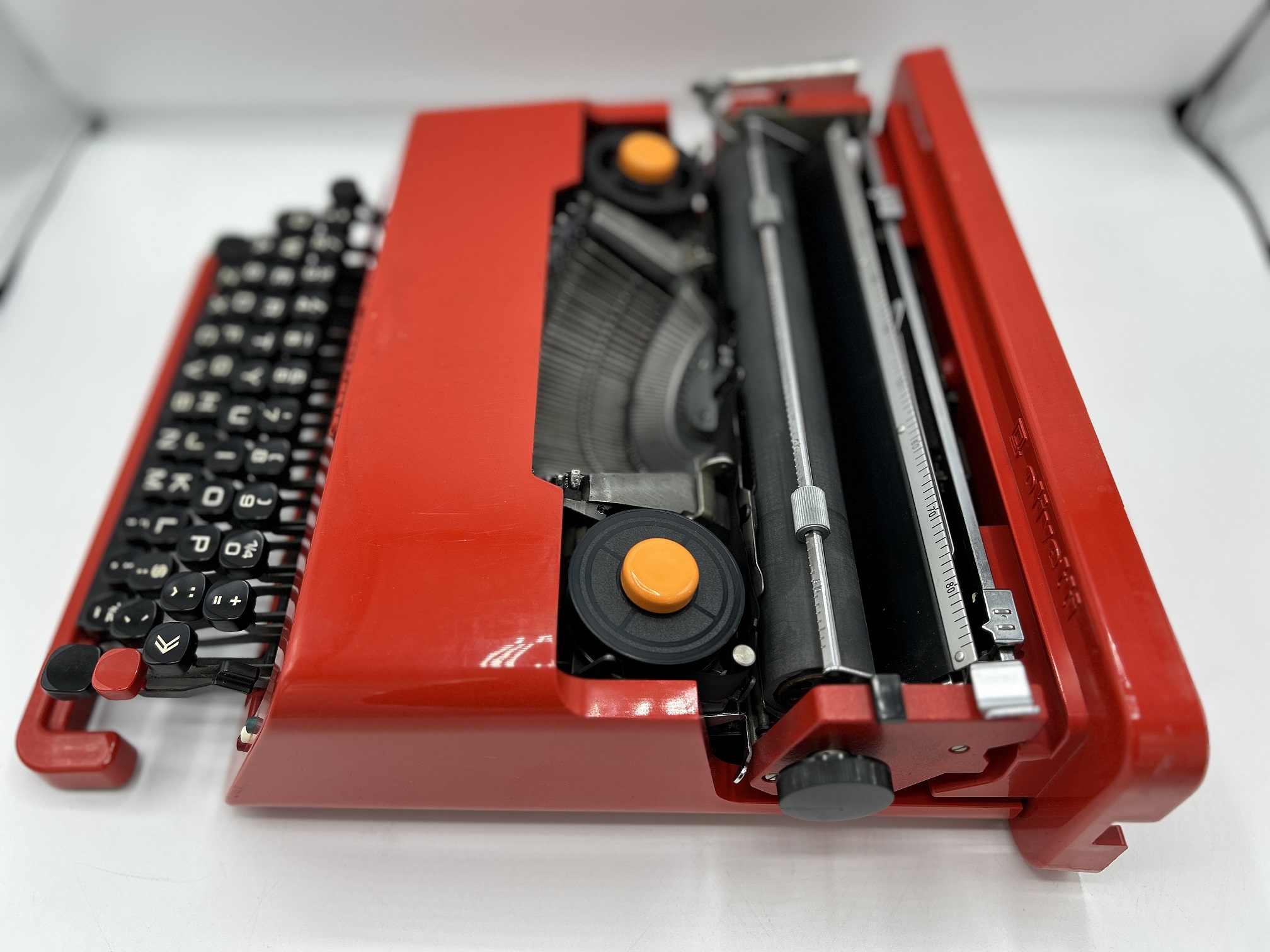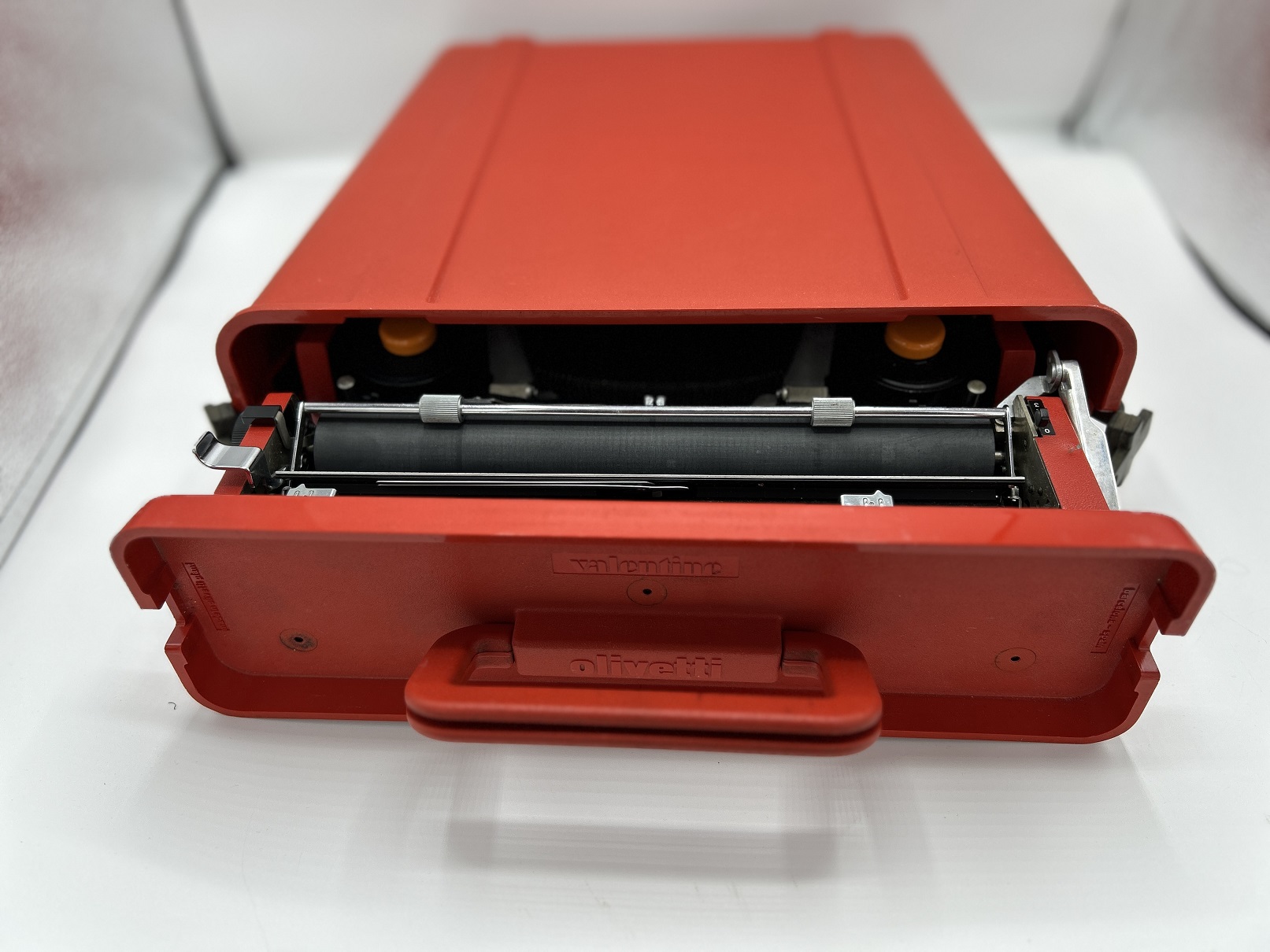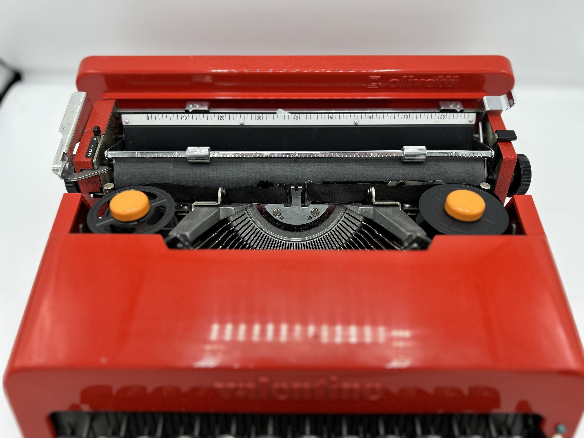 Curiosità: Ettore Sottsass si unì al team di progettazione Olivetti nel 1958, che all'epoca comprendeva Marcello Nizzoli, designer della celebre Lettera 22. Sottsass si ispirava alla pop art dell'epoca e questo è evidente nel design della Valentine: l'involucro in plastica ABS rosso brillante lo distingueva dagli altri apparecchi da ufficio dell'epoca, realizzati nel consueto alluminio, così come il copribobina del nastro a due coperture di colore giallo-arancio. La tastiera si stacca dal resto della macchina in maniera netta grazie all’accostamento dei colori rosso e nero, in modo da fare dello strumento di scrittura un ‘oggetto’ atto a farsi notare e ad essere utilizzato anche da un pubblico meno professionalmente motivato alla scrittura meccanica. Anche la custodia rigida è costruita per rendere semplice il trasporto, quasi a ricordare una shopping bag; può addirittura essere utilizzata come sgabello, per sedersi e scrivere con la macchina appoggiata sulle ginocchia.