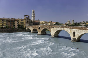Immancabile la passeggiata a Ponte Pietra, uno dei ponti più suggestivi della città, circondato da piccole boutique e negozi unici.