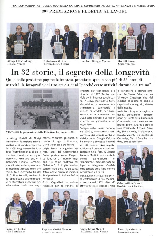 Premio Fedeltà al Lavoro, alla memoria di Luciano Nicolis, CCIAA Verona.