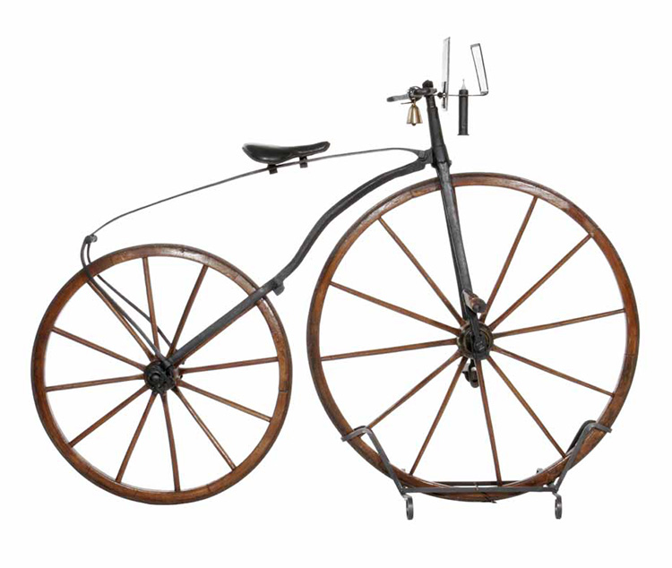 Si parte con una protagonista assoluta, la Draisina del 1816. Creata dal tedesco Barone Von Drais, è l’oggetto più vicino alla nostra bicicletta. Ovviamente, i ciclisti dell’epoca avevano le loro difficoltà, basti pensare che il mezzo, un pezzo unico in legno, era totalmente privo di pedali. Per avanzare si stava a cavalcioni e si procedeva a forza di pedate sul terreno senza contare che, per cambiare direzione, era necessario fermarsi e spostare il veicolo a braccia!