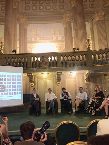 Pietro Trincanato, storico e moderatore dell’incontro, ha introdotto brevemente l’argomento, per poi passare la parola a Paolo Verri, organizzatore culturale, esperto di sviluppo urbano e direttore di Matera Capitale della cultura 2019. Verri ha esordito trattando il tema della cultura nel suo significato più ampio, invitando a mantenere l’attenzione sul contemporaneo, piuttosto che cristallizzare le energie su ricchezze del passato, nell’ottica di interpretare la realtà odierna e mantenerla viva in un mondo sempre più internazionale. «Questa competizione non è una gara di bellezza, ma la risposta ad alcuni criteri, primo fra tutti l’impegno della collettività; per sviluppare un programma interessante per i locali e attrattivo per chi proviene da fuori, non è fondamentale essere riconosciuti come mete turistiche e culturali d’eccellenza, — spiega Verri — bensì dare un orientamento civico alla comunità, con la volontà di diventare città dei cittadini e non dei turisti, facendo impresa e politica in un’ottica di collaborazione e apertura, sempre mantenendo l’autenticità e lo spirito del luogo».