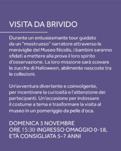 Il Museo Nicolis vi aspetta per la "Visita da brivido" (età consigliata 5-7 anni) che si terrà Domenica 3 novembre alle ore 15.30.