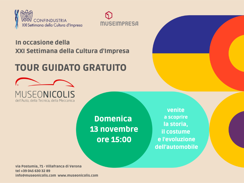 Il Museo Nicolis aderisce alla XXI Settimana della Cultura d’Impresa, la rassegna di eventi promossa da Museimpresa e Confindustria che ci porta alla scoperta dell’immenso patrimonio culturale dei Musei e Archivi d’Impresa italiani.