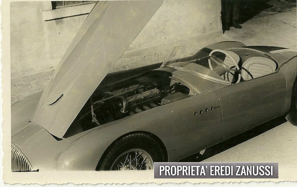 Fioravante Zanussi (Pasiano di Pordenone 1894 – Treviso 1960) è stato un pilota amatoriale, un preparatore ed un piccolo produttore di autovetture da corsa. Nella sua officina di Treviso, attiva dal 1919, ha preparato centinaia di vetture per i piloti locali ma, ad oggi, sono solo 7 le vetture che risultano prodotte dalla Zanussi, con la prima, una Fiat 508 C 1100, realizzata sulla soglia della seconda guerra mondiale, con la quale il pilota trevigiano Alberto Comirato vinse il titolo di Campione Italiano nel 1939. Nel dicembre del 1951, Zanussi acquista un’Alfa Romeo 6C 1750 Compressore del 1929: a partire dai documenti di questa vettura e annotando le trasformazioni nell’Ottobre del 1952, realizza la sua Zanussi 1100 Sport, quella del Museo Nicolis. Si tratta di una vettura completamente nuova, esemplare unico, dotata di un telaio di sua creazione, a piattaforma e rastremato nella parte frontale, con il pavimento piatto, in acciaio a sezione rettangolare. Inizialmente la Zanussi 1100 Sport è equipaggiata con il motore dell’Alfa Romeo 6C privato di due cilindri (il 5° ed il 6°) con un’ardita trasformazione realizzata dallo stesso Zanussi, portato ad una cilindrata di 1168 cc. Probabilmente per motivi di affidabilità, già alla fine del 1960 al momento della vendita effettuata dagli Eredi Zanussi, la vettura monta un motore Fiat Tipo 1100 B di 1086 cc. La modifica è ufficialmente annotata nell’estate del 1961, al momento del rilascio del nuovo libretto di circolazione per “l’Alfa Romeo Tipo Zanussi”. La carrozzeria in alluminio tipo barchetta è opera della Carrozzeria Fratelli Vendrame di Treviso, che ha vestito tutte le Zanussi. Si tratta di un meraviglioso esempio delle cosiddette “speciali da corsa”, solitamente su base Fiat che offriva anche un contributo per questo tipo di utilizzo, realizzate in Italia nel corso degli anni ’50 da una moltitudine di preparatori locali per poter correre malgrado i pochi mezzi finanziari. Foto storiche di proprietà di Eredi Zanussi.